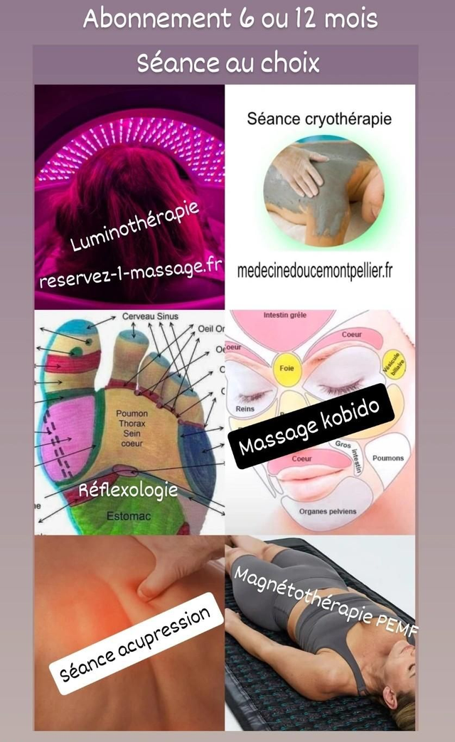Luminothérapie , radio fréquence , massage anti douleurs Cryothérapie , massage kobido "anti rides